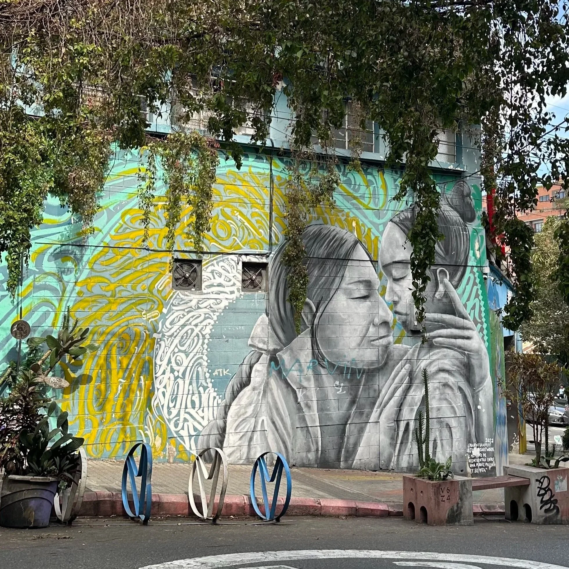 Mural description translates to: “The moment of reunion between a migrant mother and her daughter.”